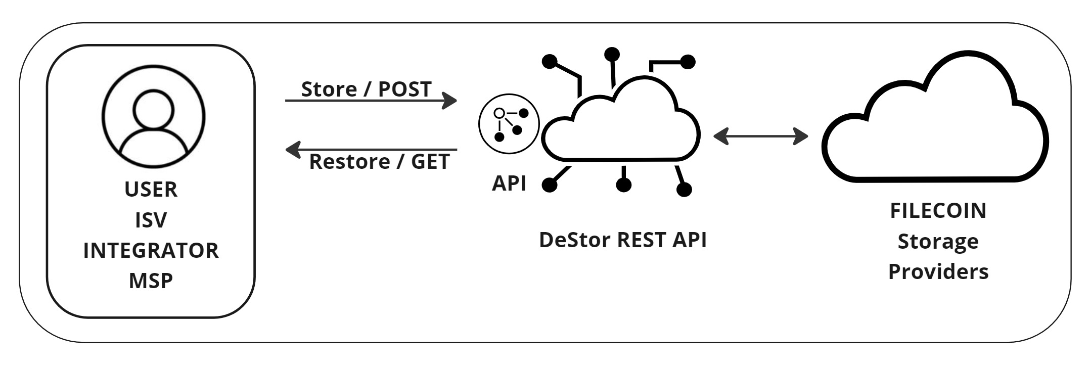 <figure><img src="https://319611134-files.gitbook.io/~/files/v0/b/gitbook-x-prod.appspot.com/o/spaces%2FBZTODzcr66pjVMFDEu8b%2Fuploads%2Fyrv3brhrsIjO9xu72pu0%2FDeStor%20REST%20API%20for%20Filecoin%20-%20Architecture.jpg?alt=media&#x26;token=d6838a6d-79da-43fd-9af3-ca04ed6075cb" alt=""><figcaption><p>DeStor REST API for Filecoin - Architecture</p></figcaption></figure>